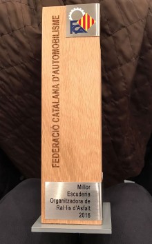 La Federació Catalana d’Automobilisme (FCA) ha lliurat aquest divendres, 20 de gener, a l’Escuderia Osona el premi a la Millor escuderia organitzadora de ral·lis d’asfalt pel Ral·li Osona, que ha estat considerada la millor prova del calendari 2016.