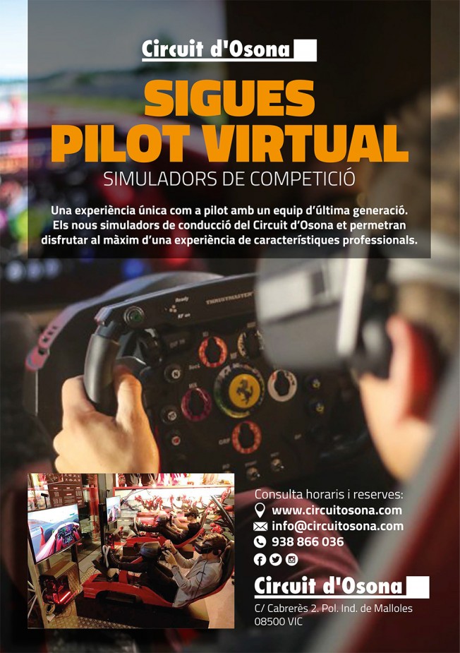 Una experiència única com a pilot amb un equip d'última generació. Els nous simuladors de conducció virtual que hem estrenat al Circuit d'Osona et permetran gaudir al màxim d'una experiència de característiques professionals.