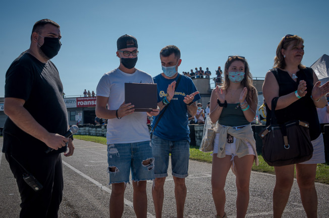 El germà d’en Marc, l’Aleix, ha estat l’encarregat de donar la sortida de la cursa, i la seva promesa, l’Anna, de baixar la bandera de quadres de l’arribada. Els seus pares, l’Ester i en Sergio, han donat els premis.