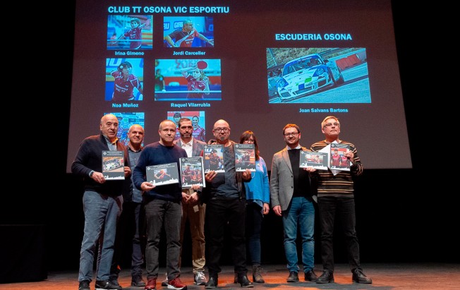 L’Institut Municipal d’Esports de Vic ha distingit aquest divendres, 15 de febrer, el pilot de l’Escuderia Osona Joan Salvans, campió de Catalunya de ral·lis de muntanya d’aquesta temporada. Ho ha fet en el marc de la Festa de l’Esport Vigatà 2018 (foto: Josep M. Montaner).